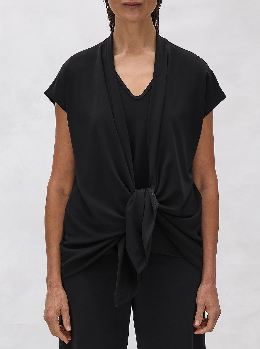 - Drapey shawl front opening