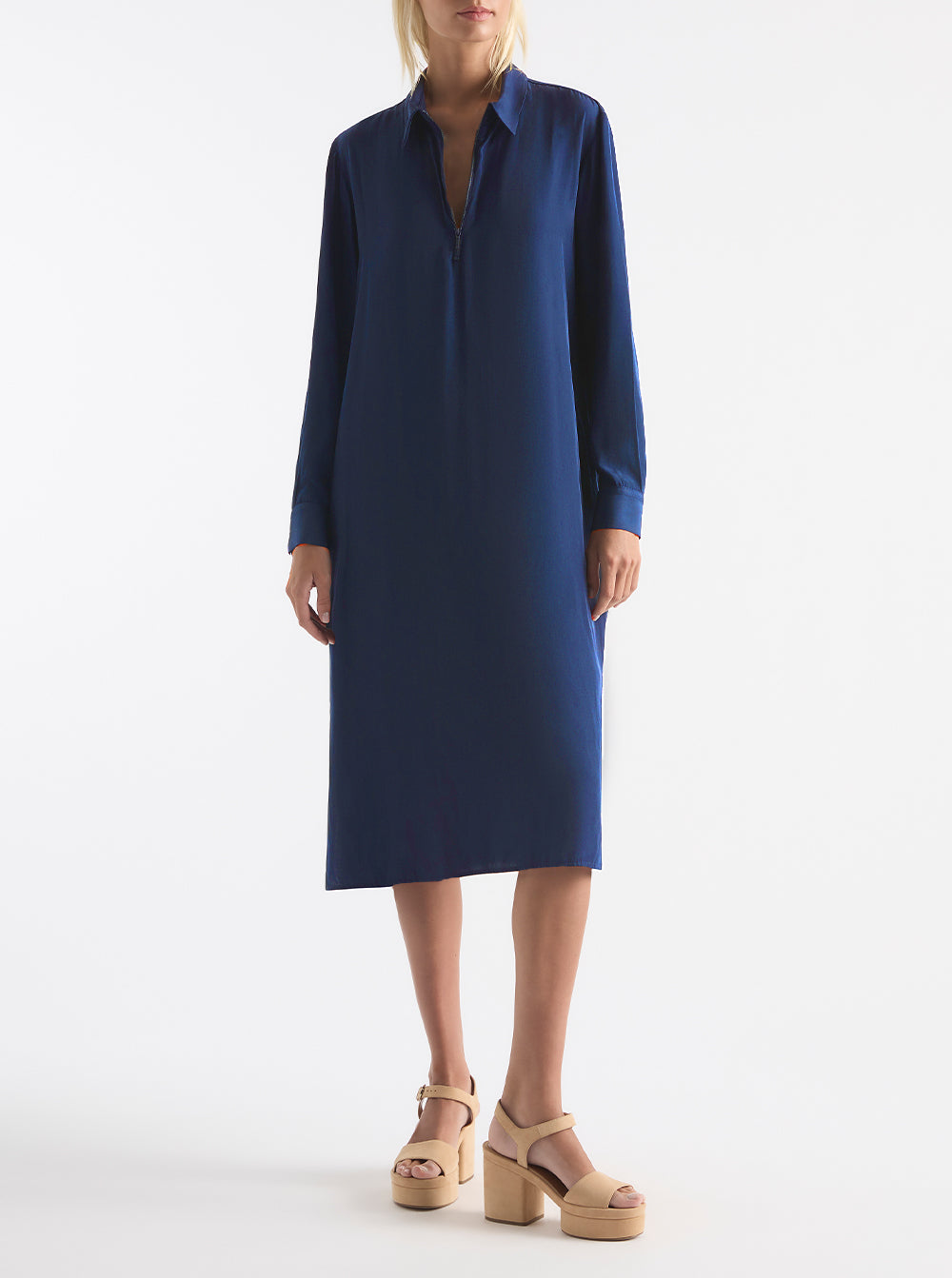 Crafted from Mela Purdie's Mache, featuring a relaxed fluidity & smooth lustre surface. The Zip Wedge Dress is a comfortable and flattering silhouette, featuring a crisp collar and zip neckline detail.