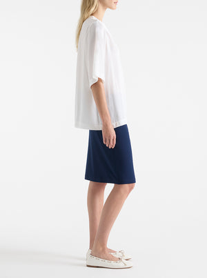 This soft double tube skirt is one of our Mela Purdie’s best-selling styles. Cut for a close fit and featuring a comfortable elastic waist, balance yours with a loose knit or soft tailored shirt for a flattering silhouette.