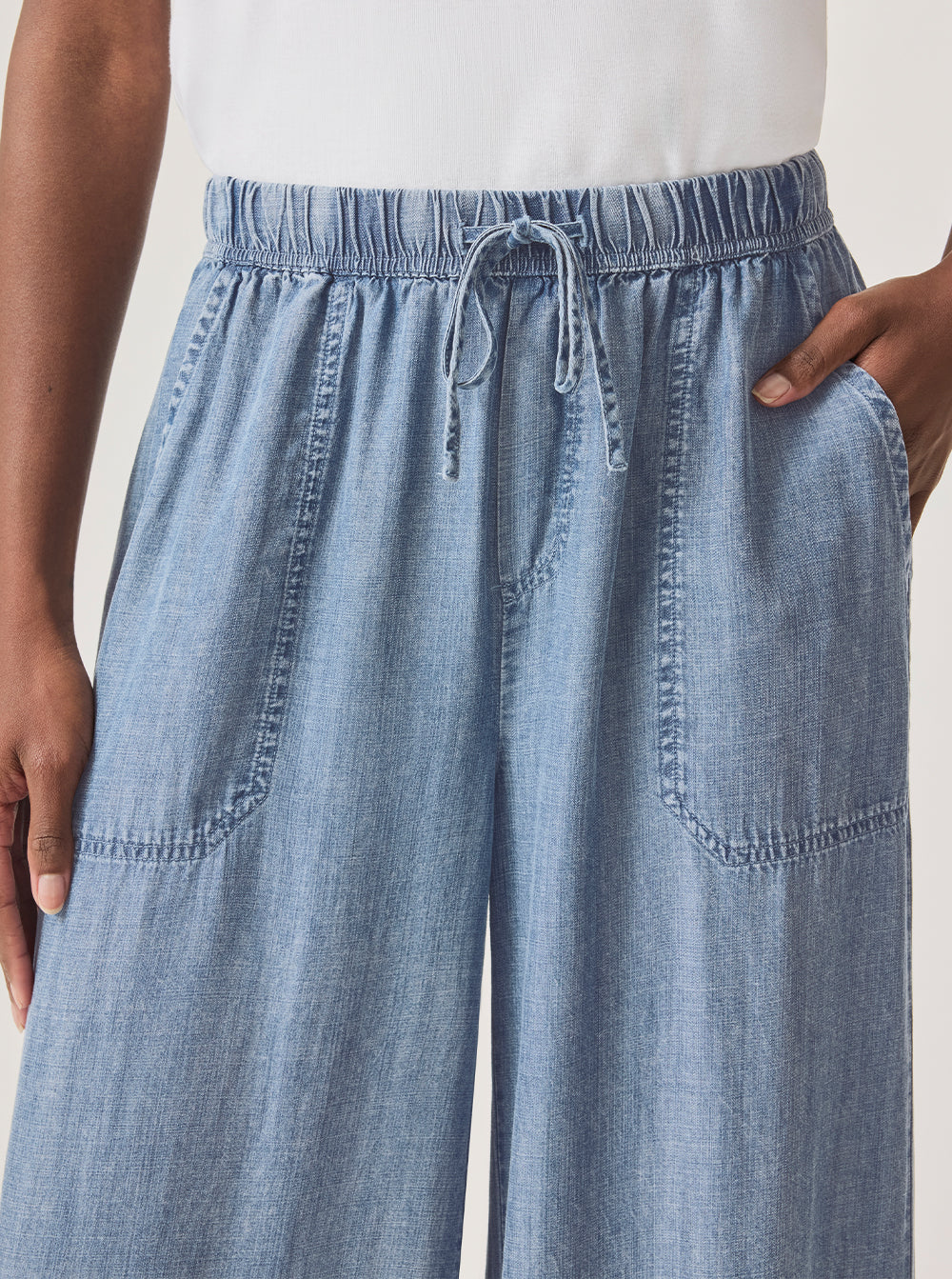 Made from lightweight Lyocell, this effortless style is topped with a stretchy waist with seamed patch pockets.