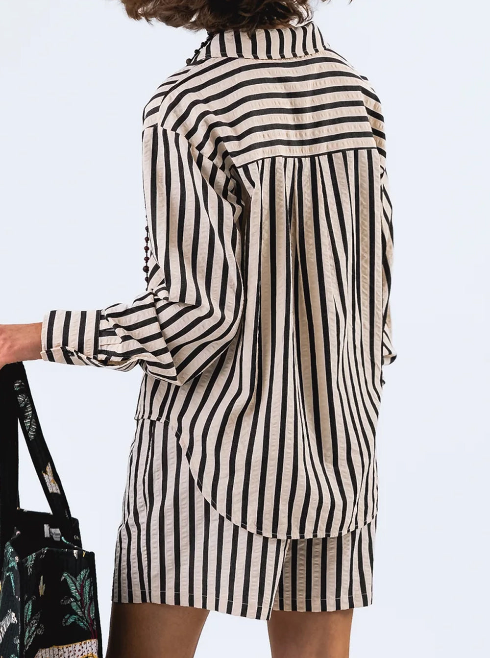 BleekerLL Shirt LS - Charcoal/Ivory Stripe