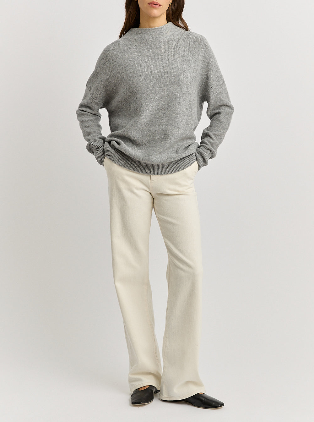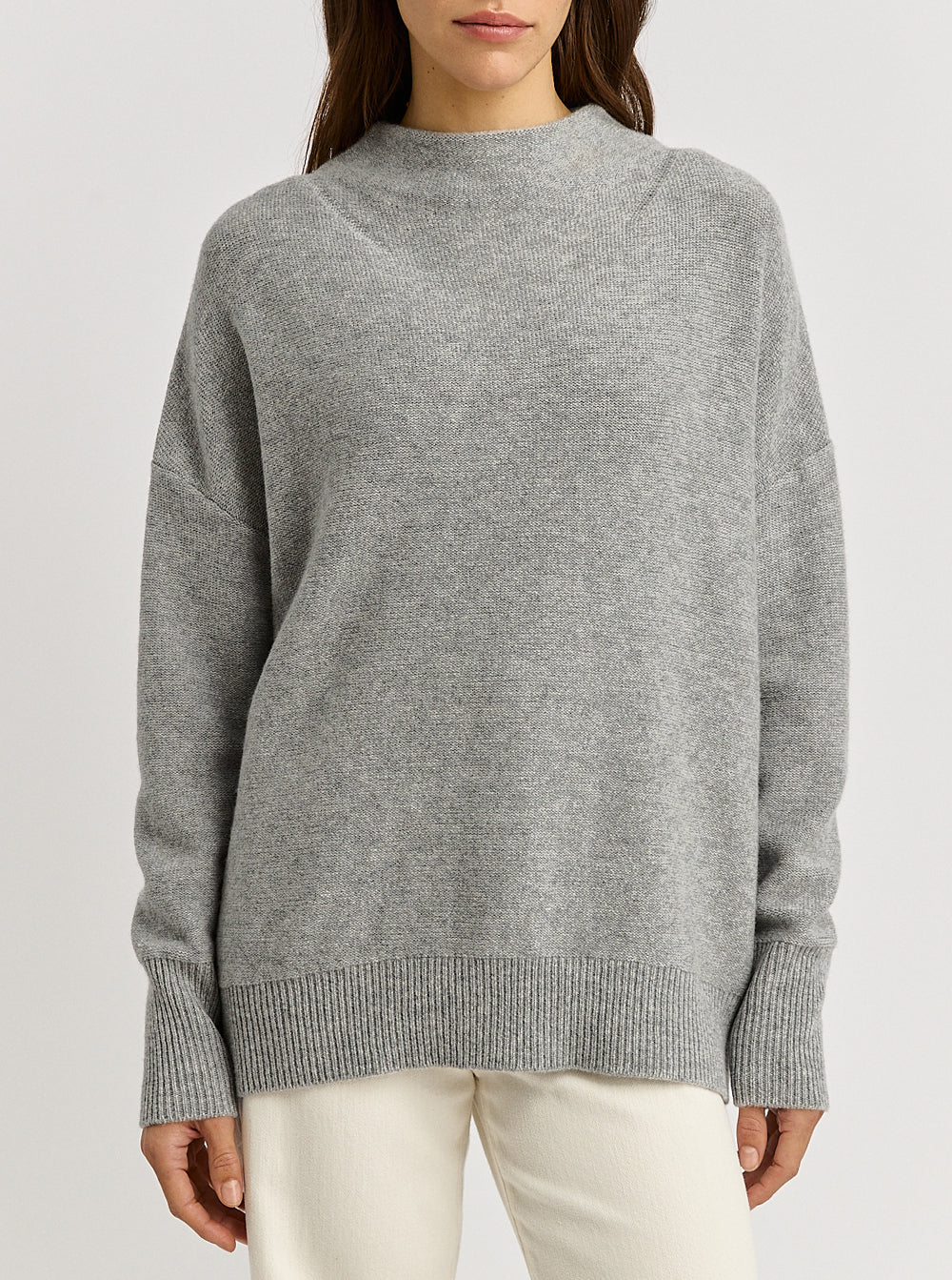 Drop Shoulder Mock Neck - Light Ash