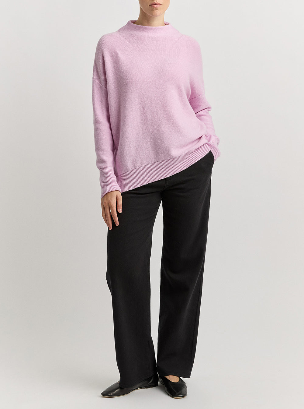 Drop Shoulder Mock Neck - Powder Pink