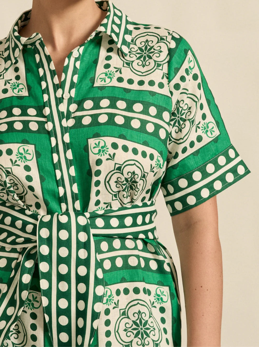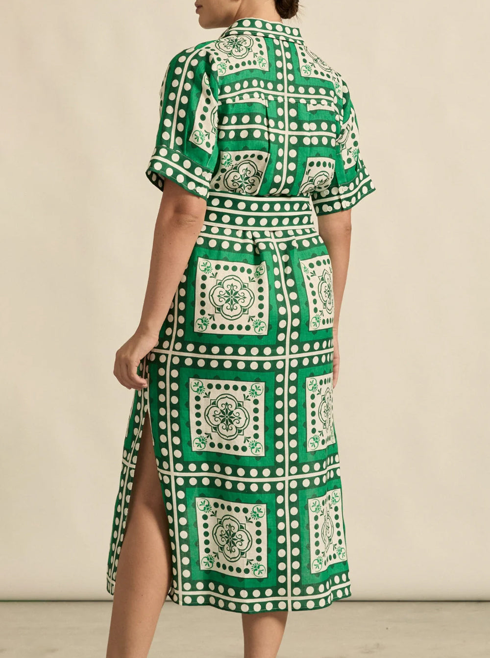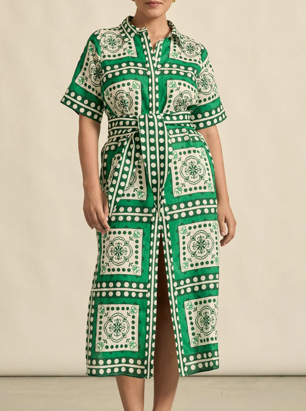 The Roam Dress is cut in airy linen, finished with thoughtful trim and a side split for relaxed movement. Sustainably printed zoe kratzmann's exclusive 'Parrot Scarf' print, a spirited exploration of hue and european-inspired graphic motif.