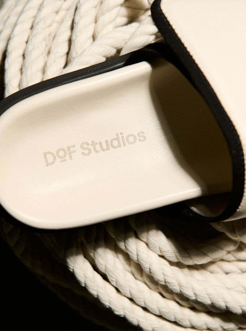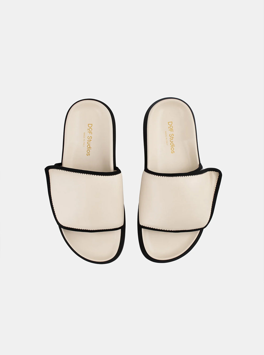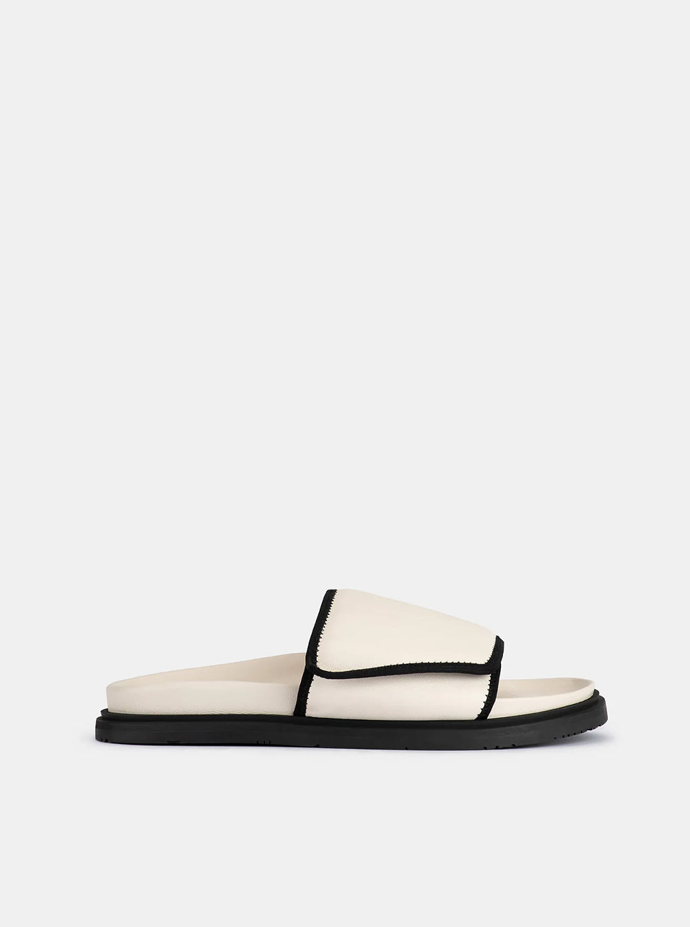 The Amara pool slide features a velcro closure and durable rubber-branded sole, balancing function and elevated style.