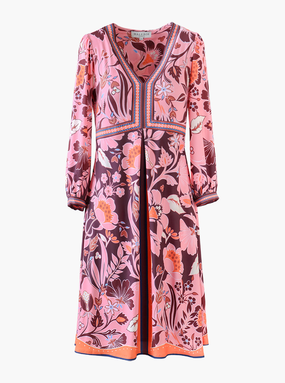 Angelique V Neck 3/4 Sleeve Dress - Pink