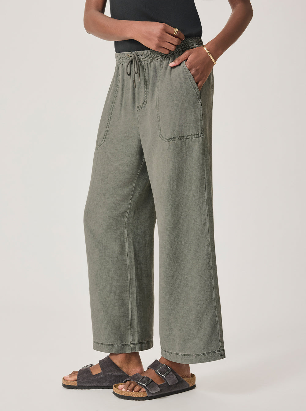 Angie Crop Wide Leg Pant - Soft Vintage Olive Branch