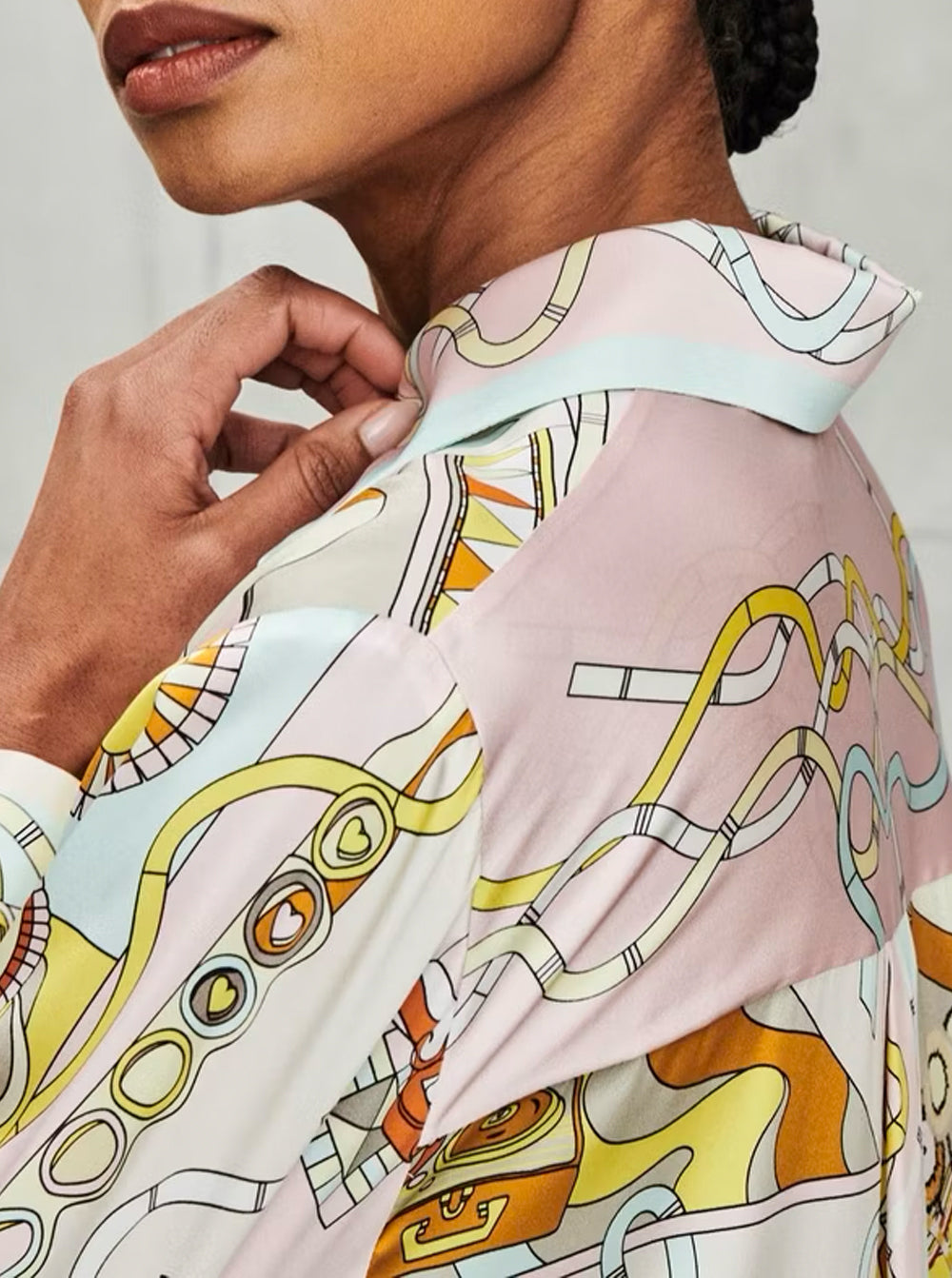 Collared print blouse in shiny silk.
