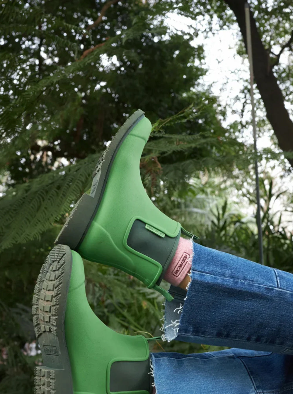 Well hello, Grasshopper Green! The spirited younger sibling to Merry People's beloved, earthy Alpine Green Bobbi, this new shade is vibrant and full of energy! Grasshopper Green loves to be amongst it; its natural habitat is outside, in the mud, grass and all of nature’s merriness.