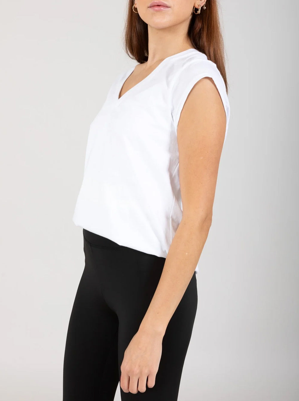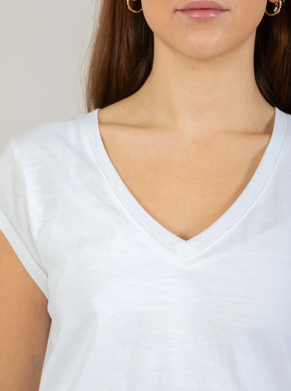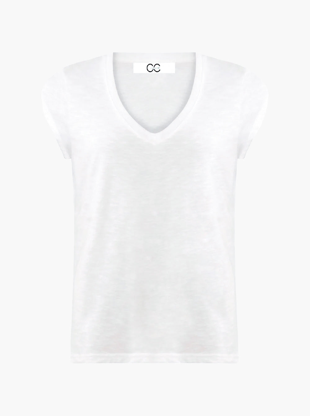 T-shirt in a sleek silhouette with dropped shoulders and a V-neck.