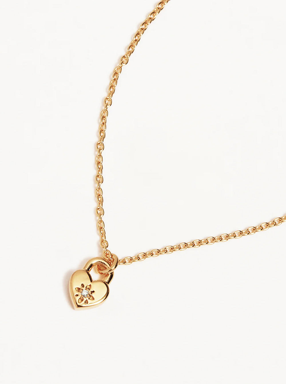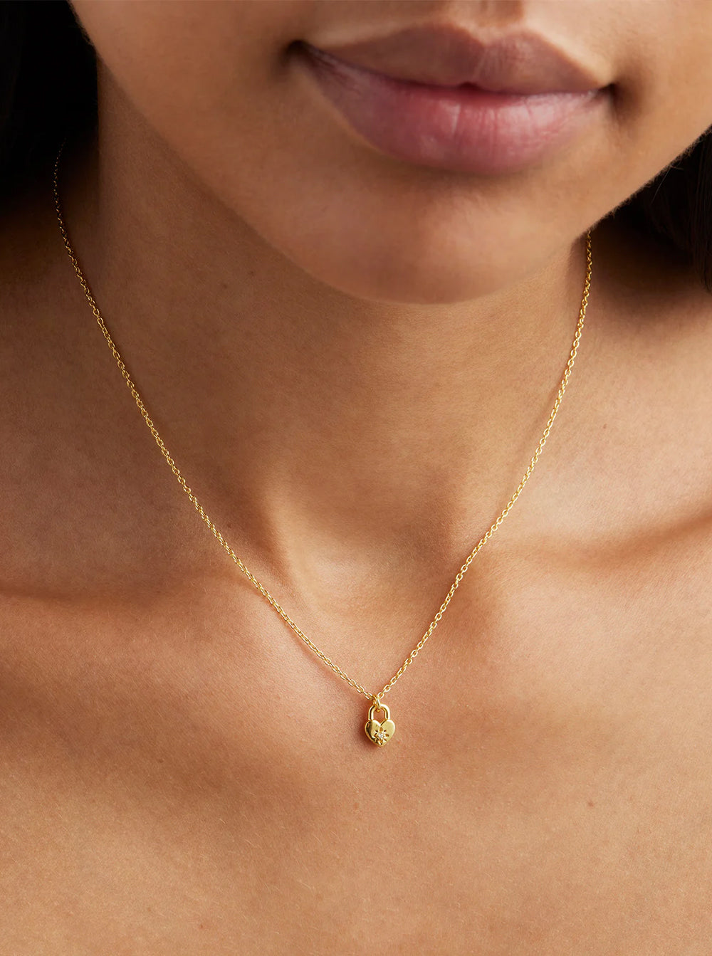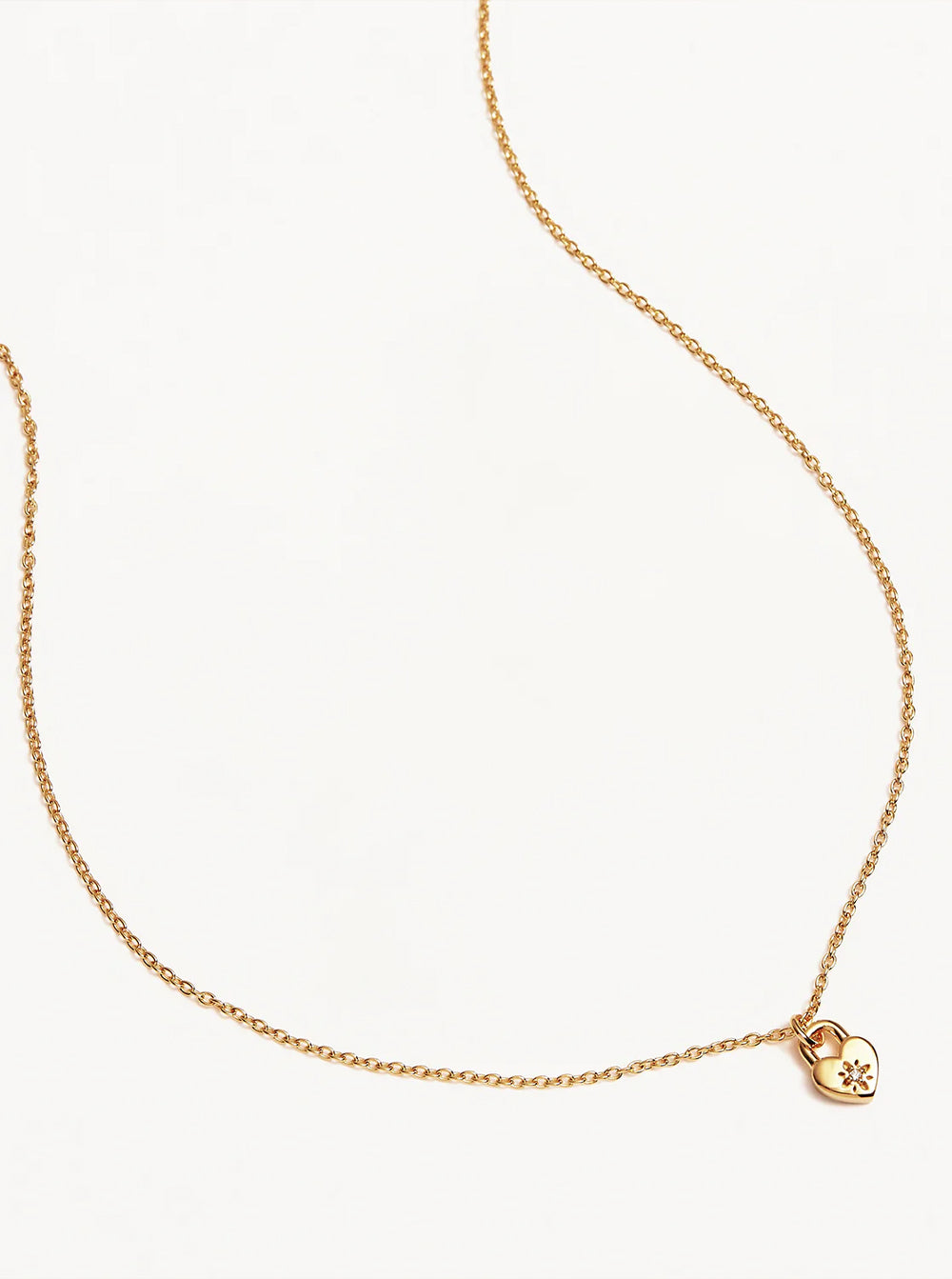 by charlotte's 18k Gold Vermeil Crystal Lotus Heart Padlock Necklace represents the unbreakable bonds that unite us.