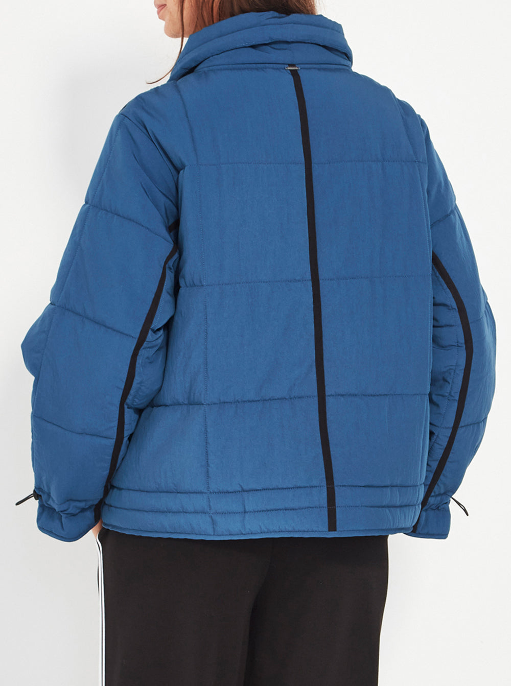 The design features adjustable drawcords at the neck, cuffs, and internal hem, allowing you to customise the fit and seal in warmth with ease. A zip front with dome closure adds a clean, modern edge while enhancing weather protection. Contrast piping highlights the jacket’s panel lines, giving structure and a subtle graphic touch.