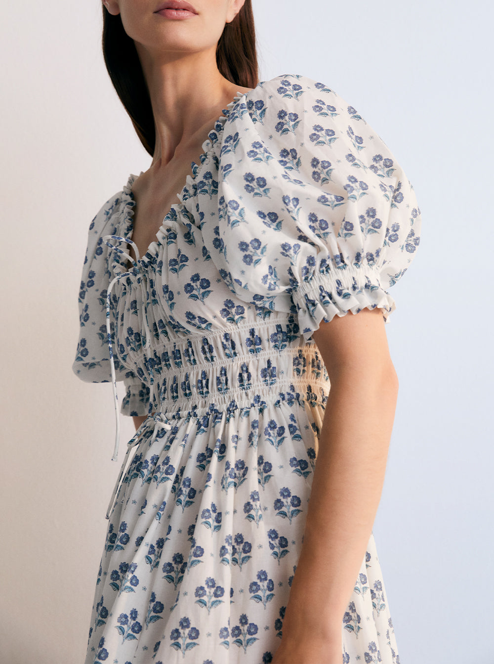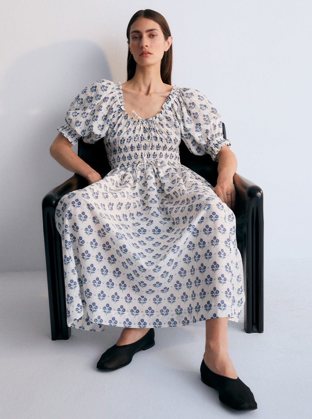 The Eleni Woman Dress, our bestseller, now comes in our signature Hyacinth print, crafted from 100% cotton poplin for a lightweight and breathable feel.