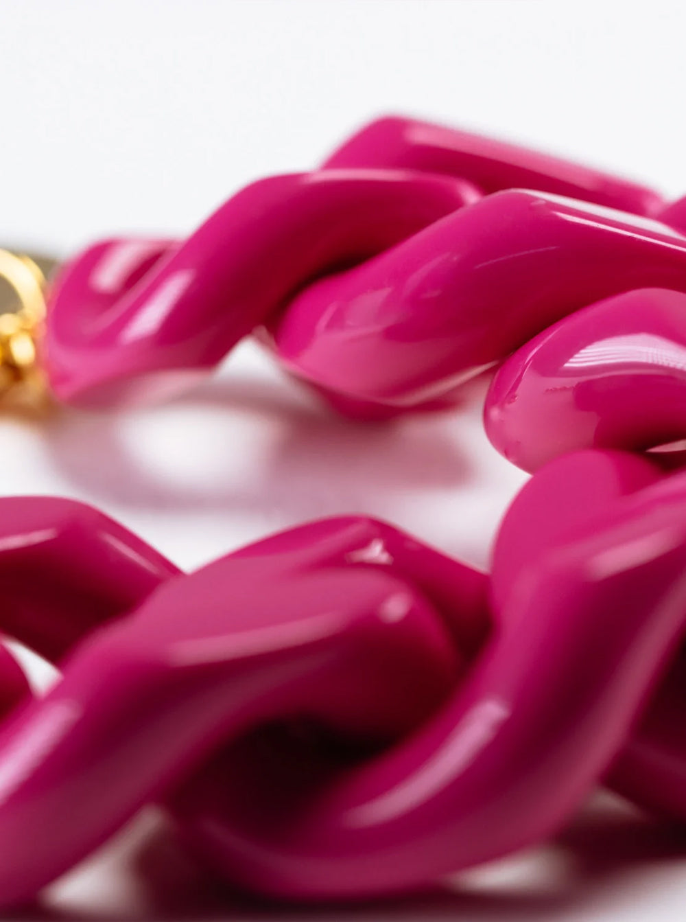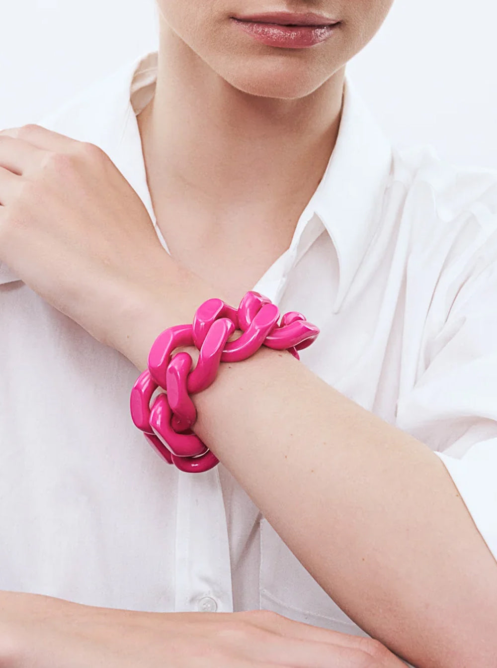 Despite the opulent chain element, the feather-light acetate links nestle around every wrist for perfect wearing comfort.