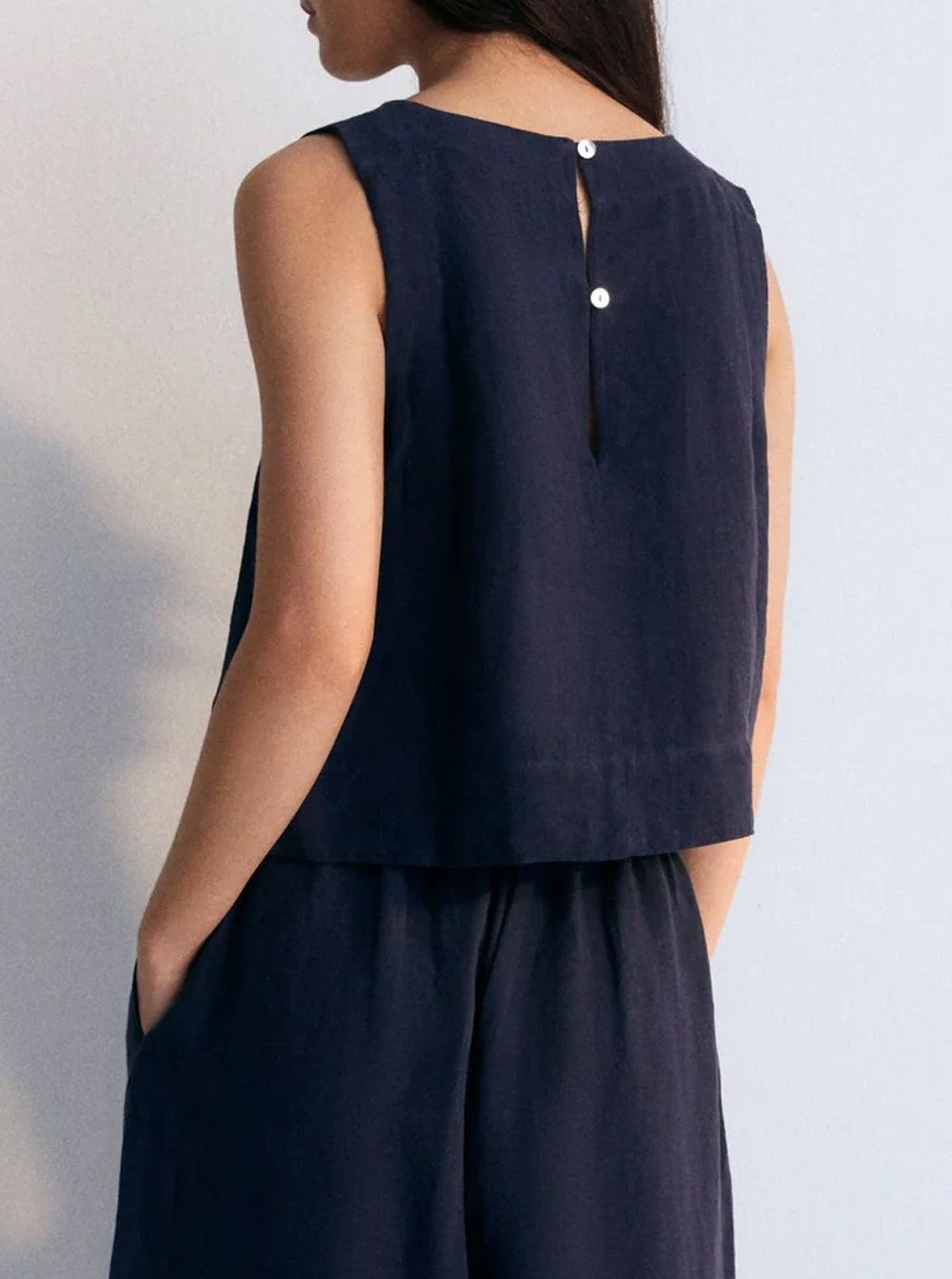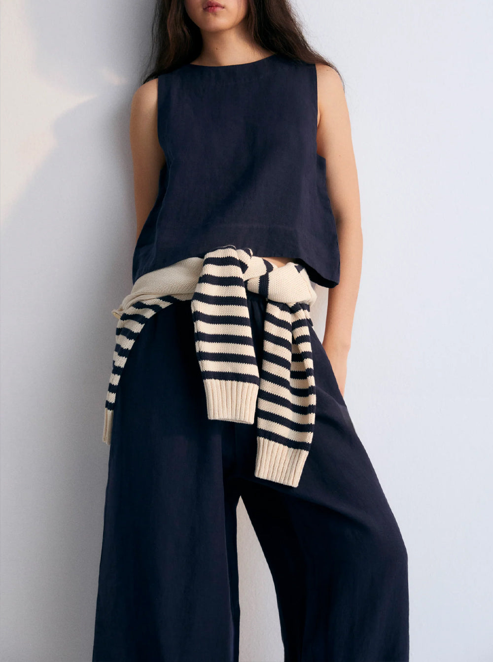 The Hera Woman Top is a minimalist and refined piece, designed to elevate your summer wardrobe. Crafted from 100% linen for a soft, breathable feel, it features wide straps and a flattering bottom cut, offering both comfort and elegance.