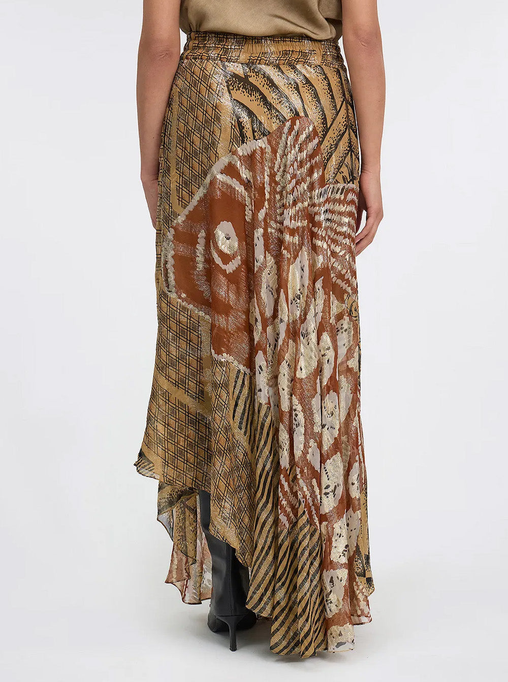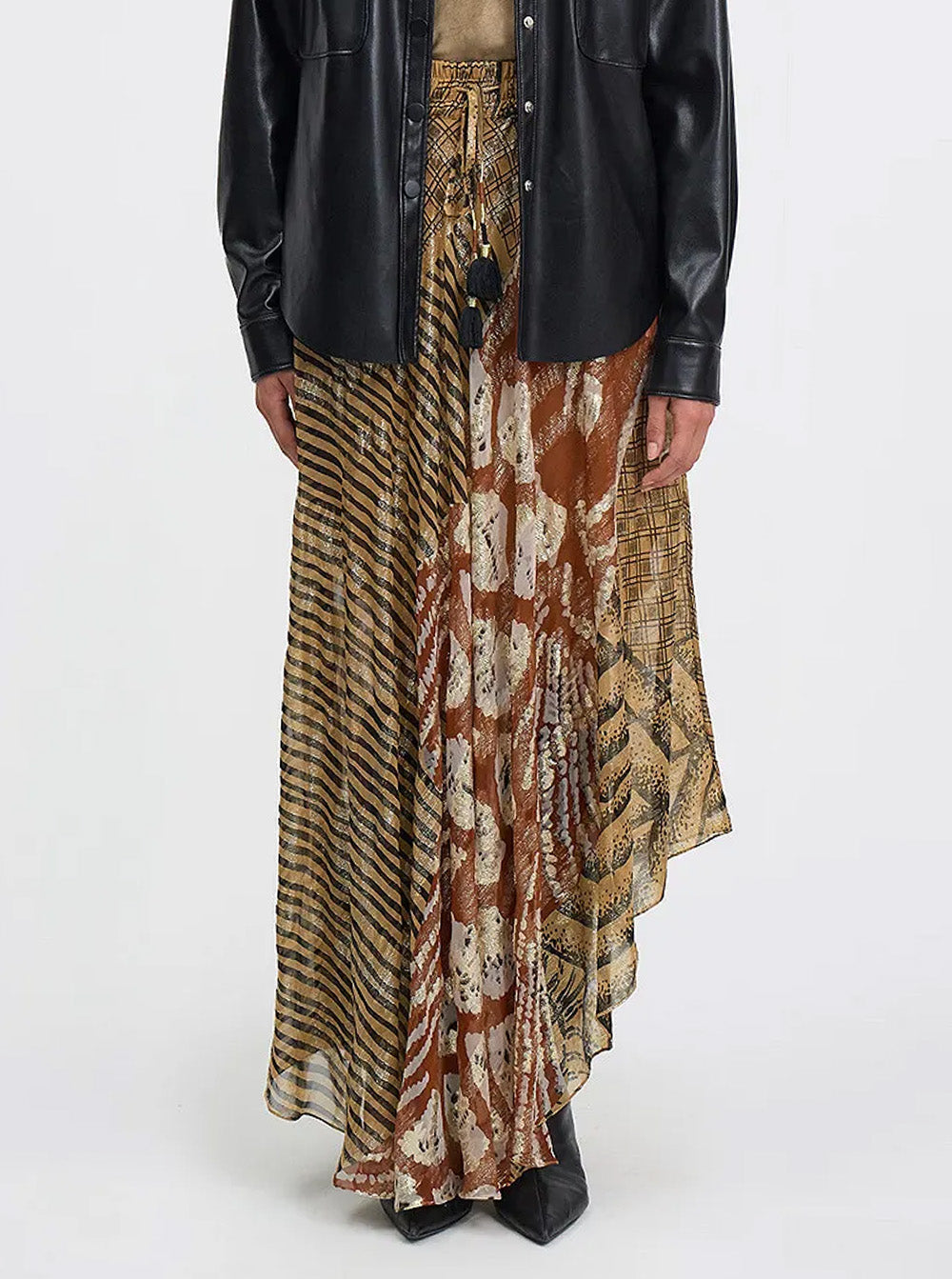 Its delicate asymmetry adds an artistic dimension to your outfit, while its fluid, slightly flared cut creates graceful movement with every step.