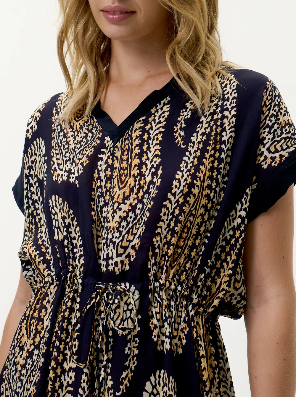 With short sleeves, a v-neckline, and a drawstring waist which ensures a flattering fit, the Sammi maxi is a must-have for your suitcase.