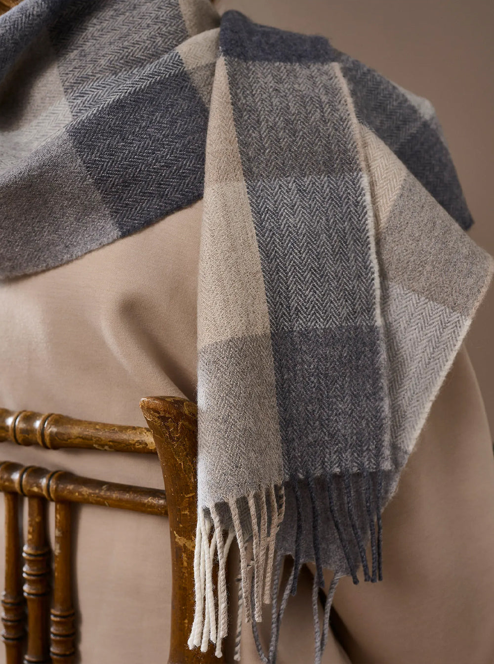 Avoca's Rome Merino Scarf boasts a palette of tonal biscuit shades and tasteful greys making it an ideal accessory to add to your collection.