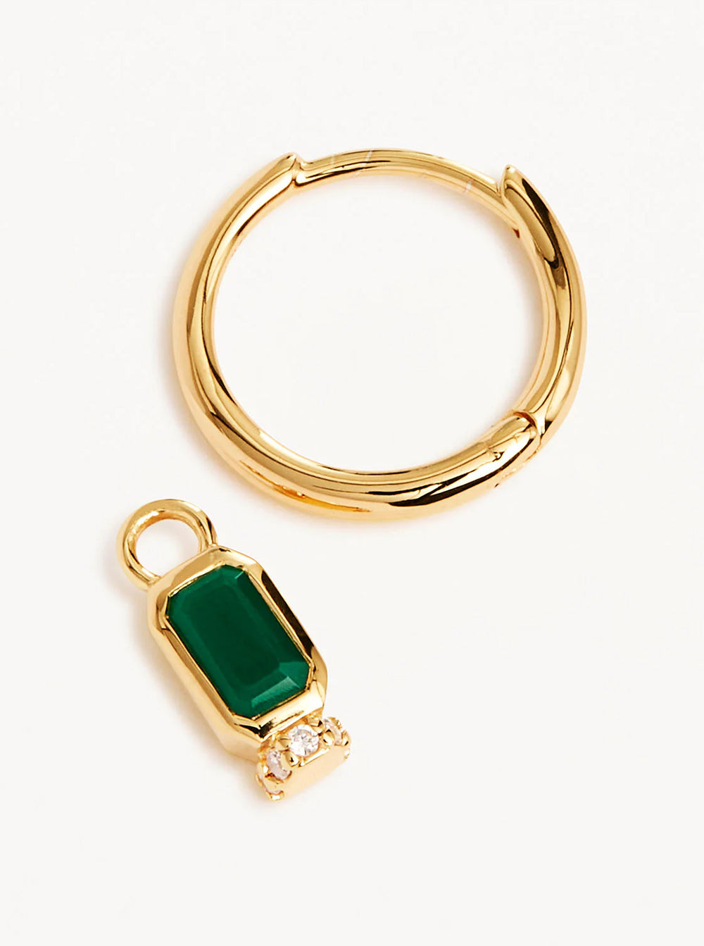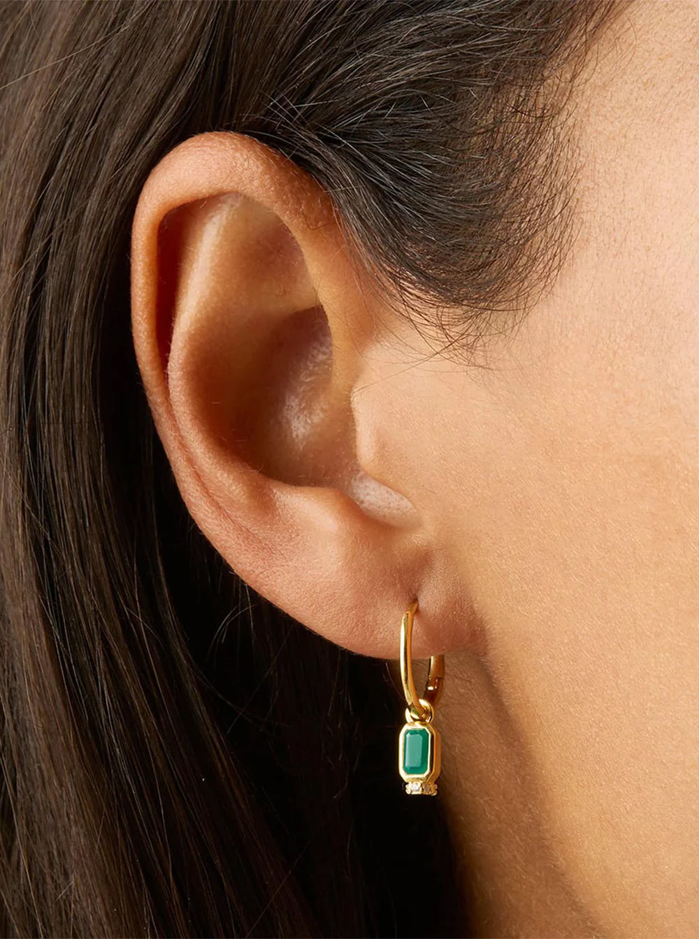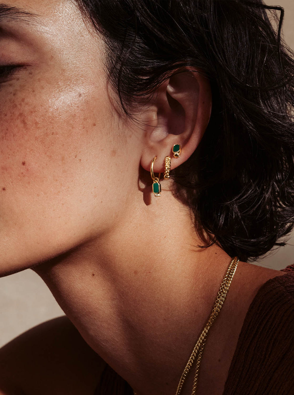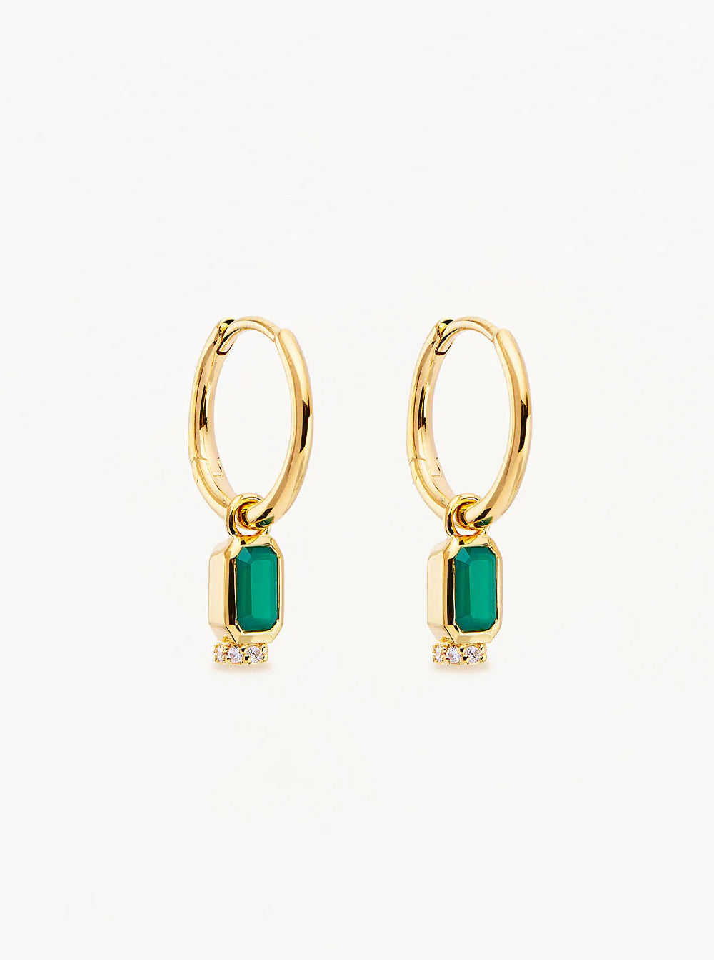 Bezel set green onyx gemstones are framed by pavé cubic zirconias, representing patience and inner strength.