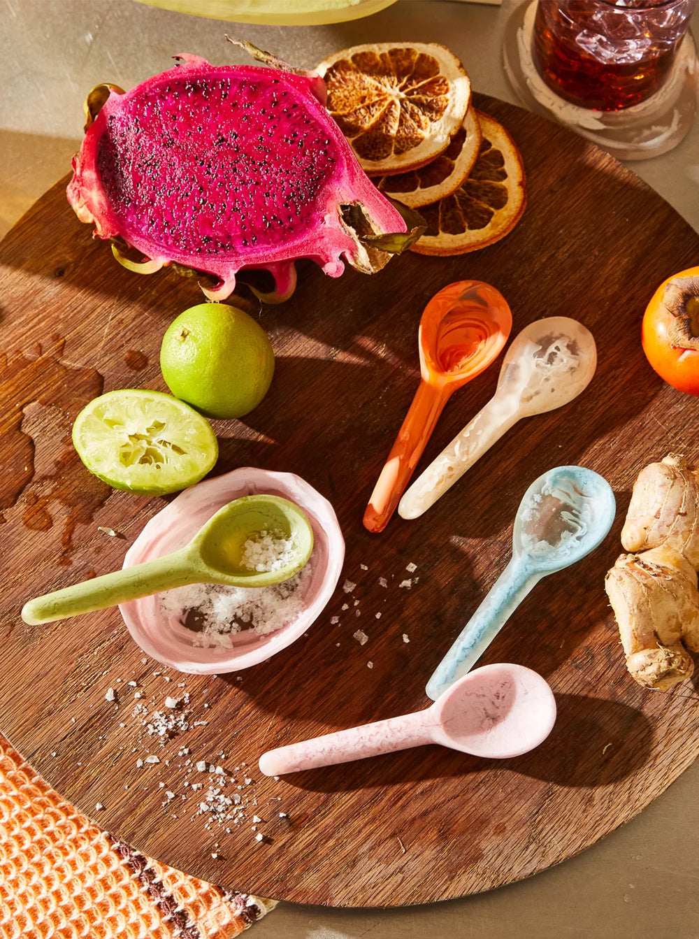 “The Suki Spoon is a beautifully designed, versatile piece that’s perfect for serving dips, olives and dollops of cream to top off afternoon scones. Reimagined here in our stunning Persimmon colourway – swirling together a rich orange and transparent resin for a bright statement.” – Phoebe’s Style Notes