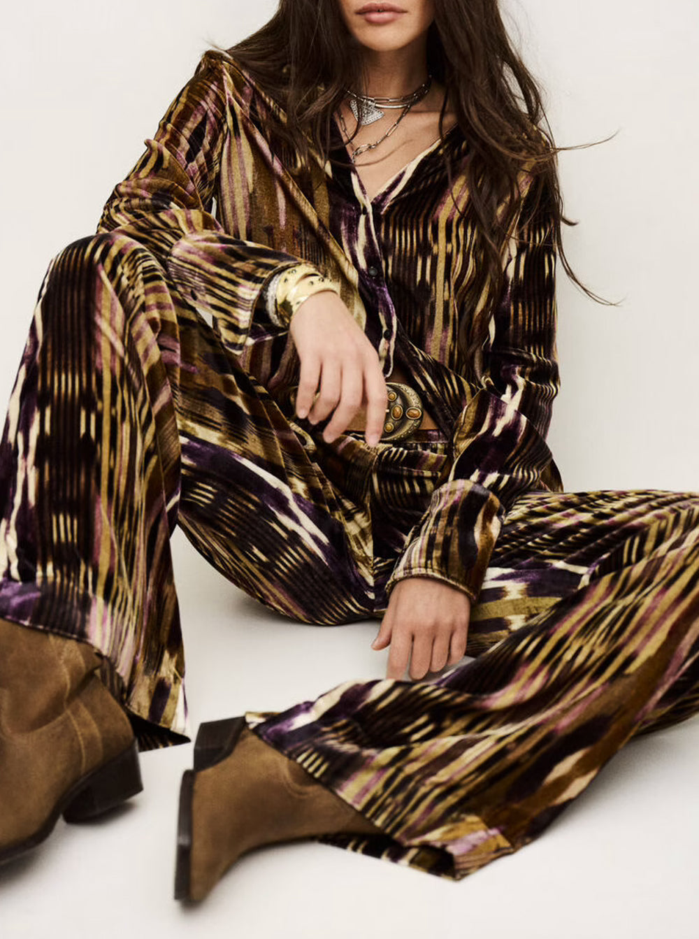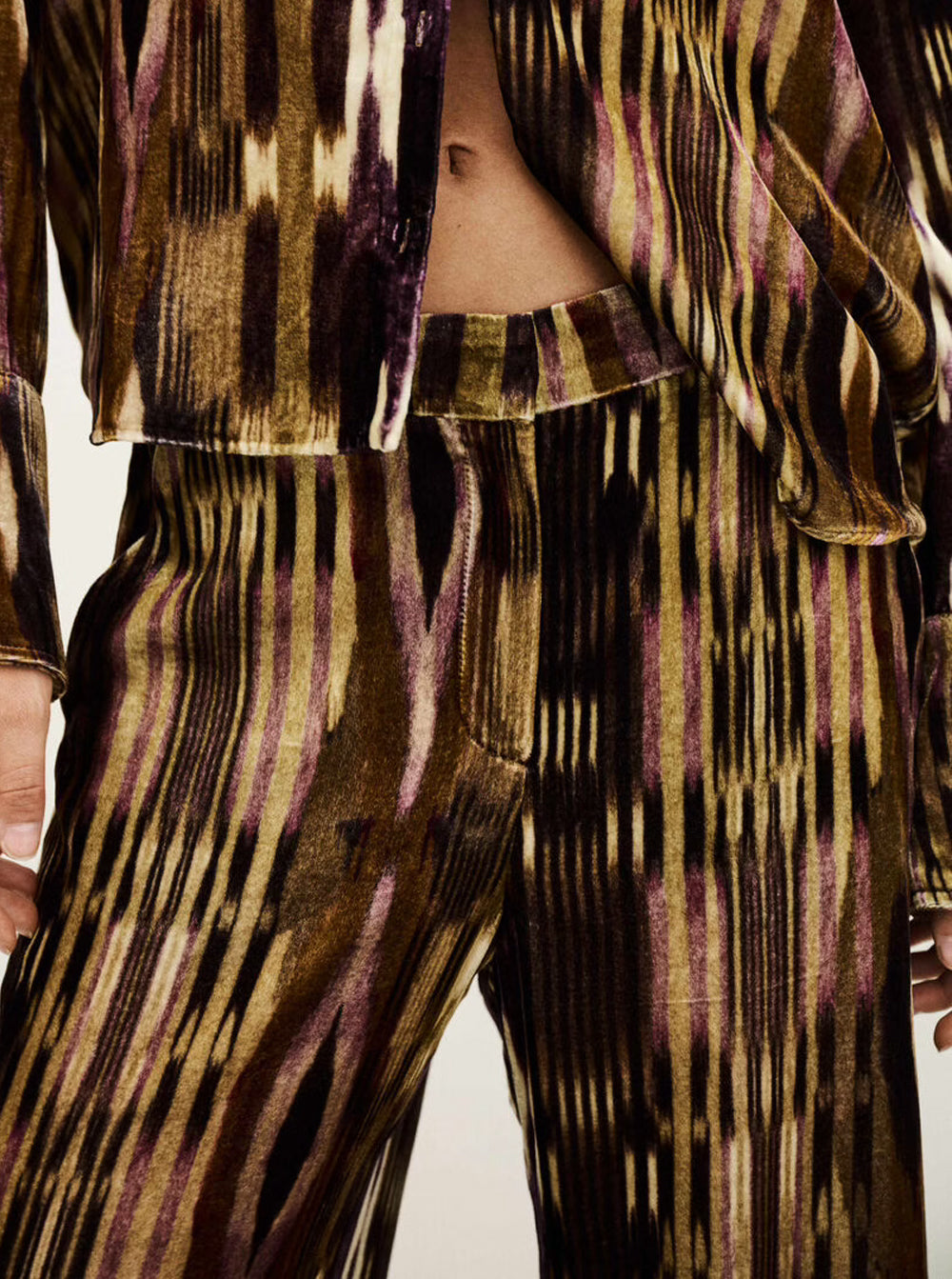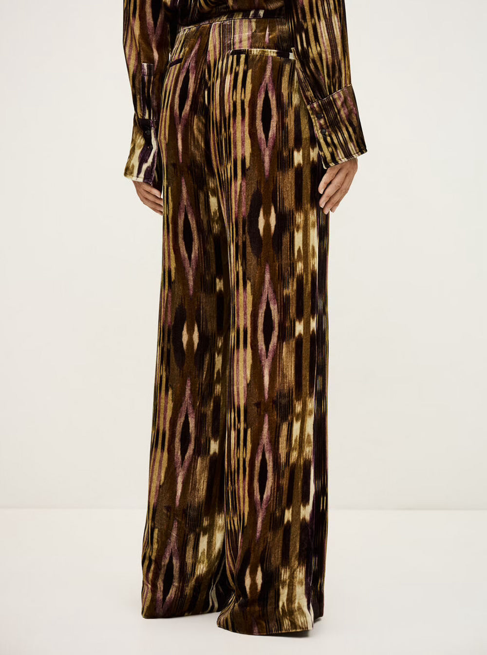 Velvo Wide-Leg Velvet Trousers - Khaki